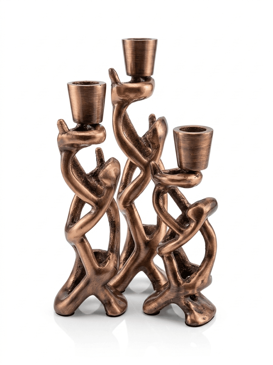 Pillar, taper, and sculptural holders. Every piece is made to order in our Moradabad workshop.